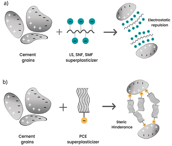 Electrostatic repulsion further enhances dispersion for smoother concrete mixes.